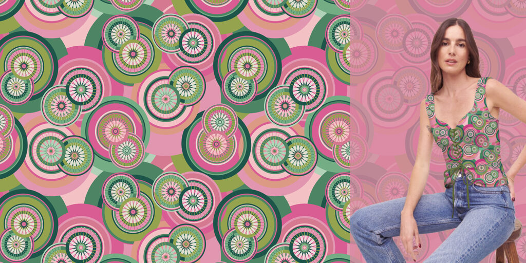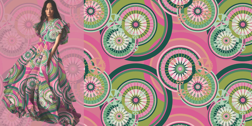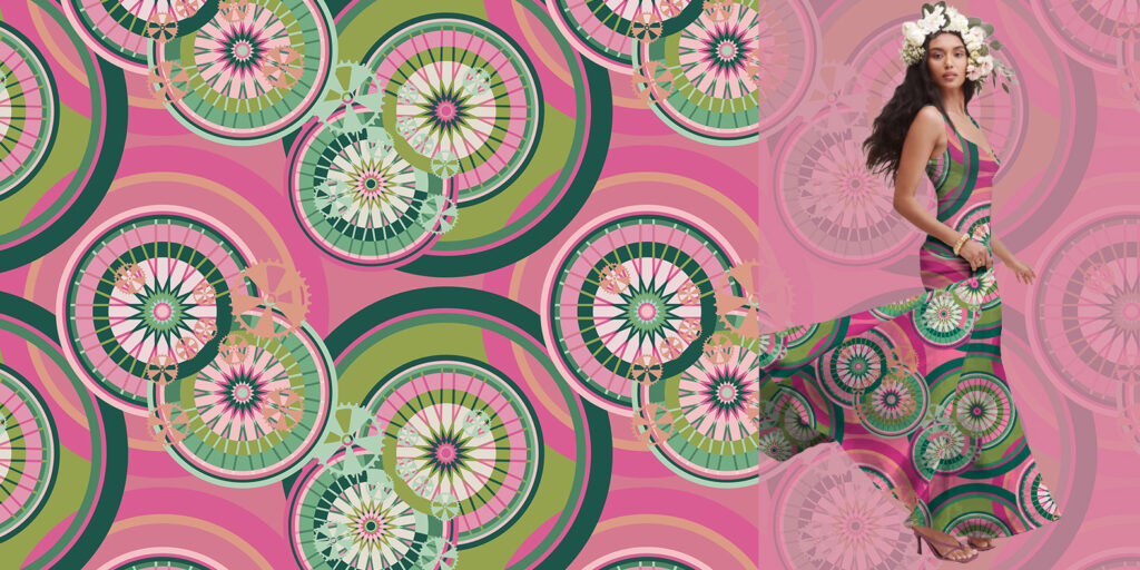 Estampa inspirada nos caminhos percorridos com uma bicicleta.