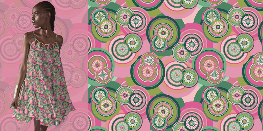 Print inspired by the paths traveled with a bicycle.